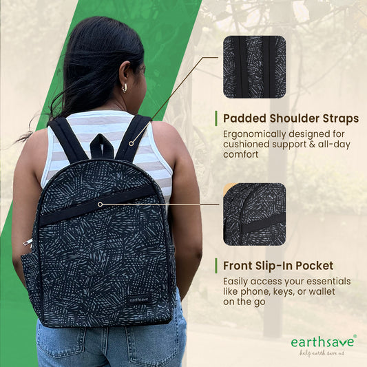 Eco Friendly Backpack | Stroke black | Stylish, Spacious, and Comfortable