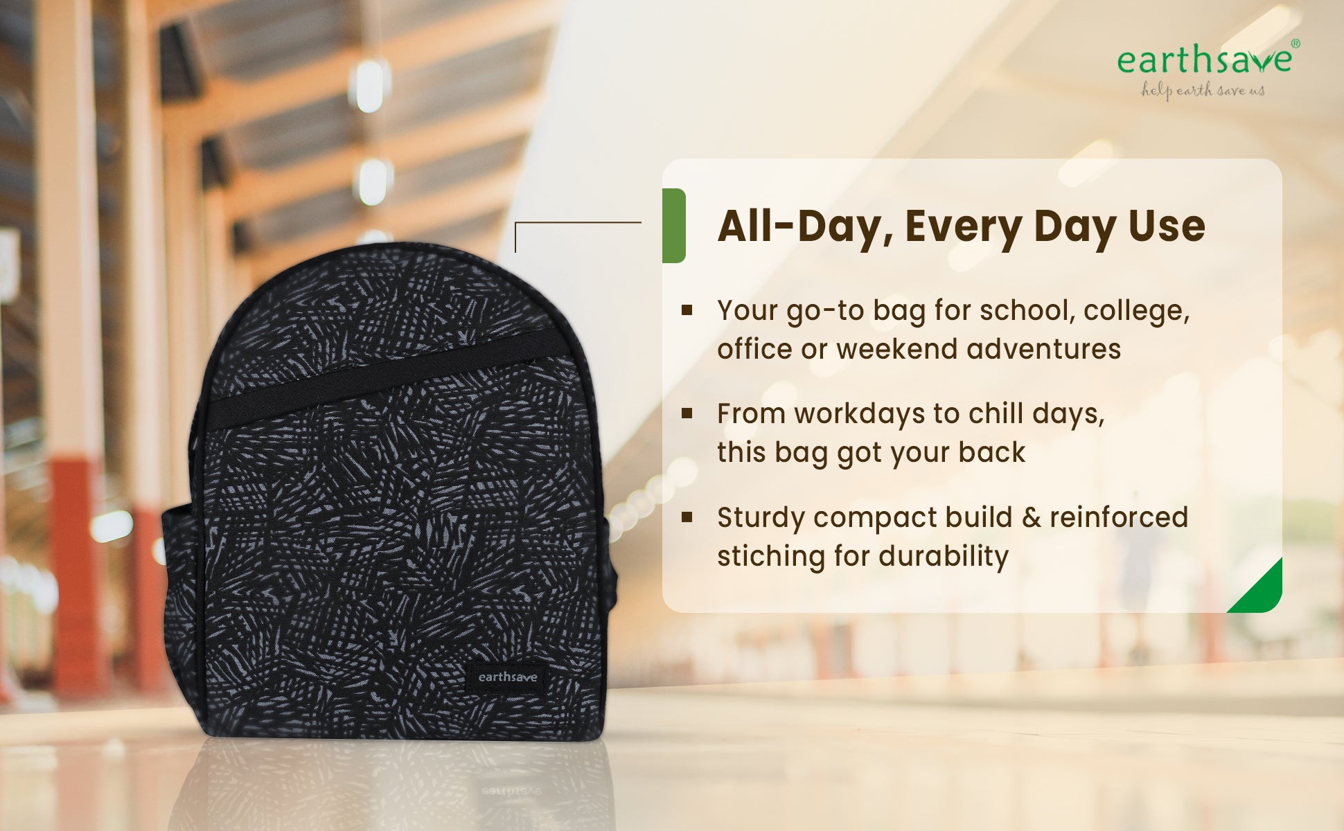Eco Friendly Backpack | Stroke black | Stylish, Spacious, and Comfortable