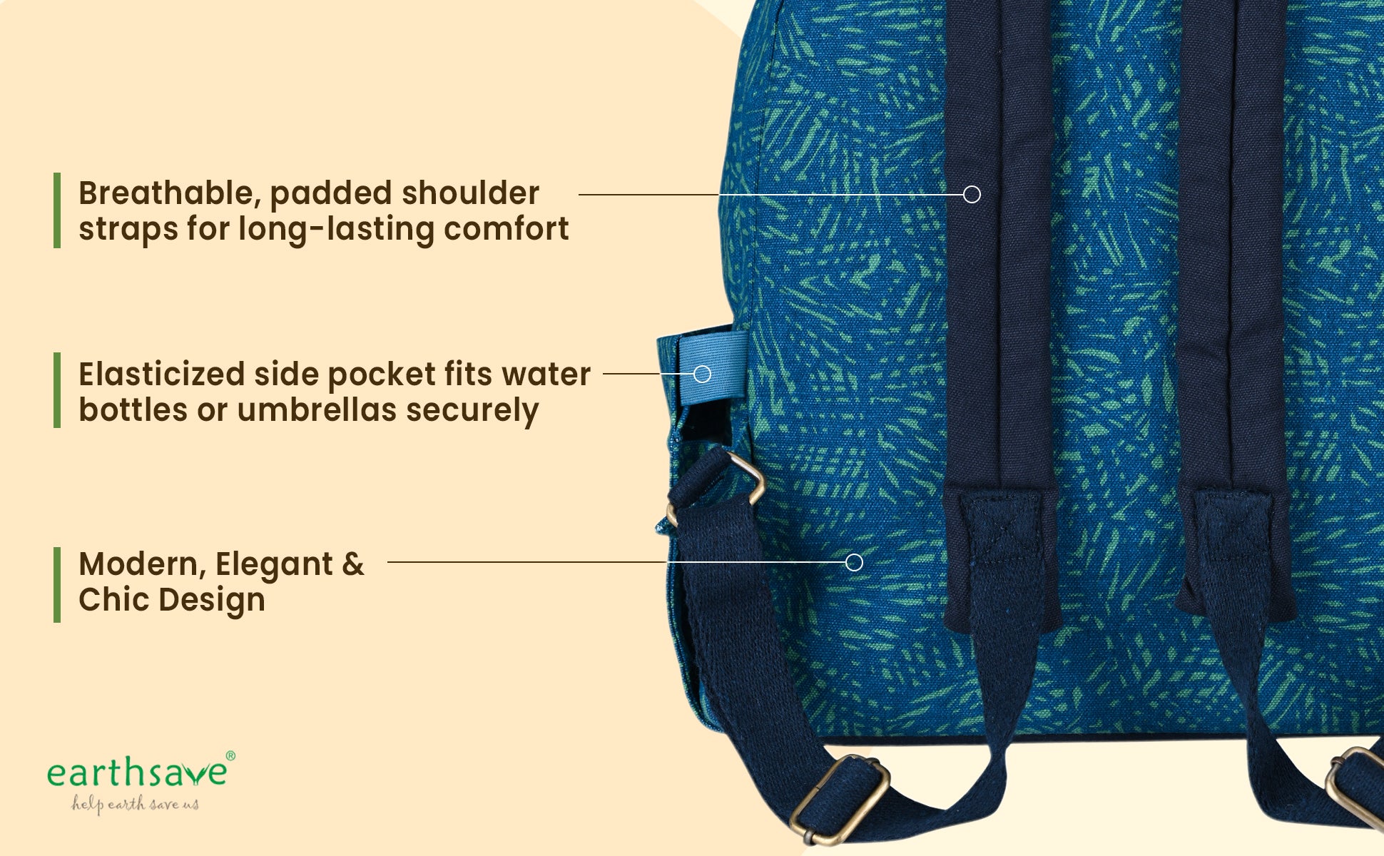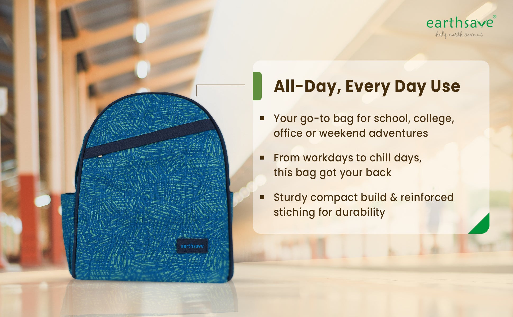 Eco Friendly Backpack | Stroke blue | Stylish, Spacious & Comfortable